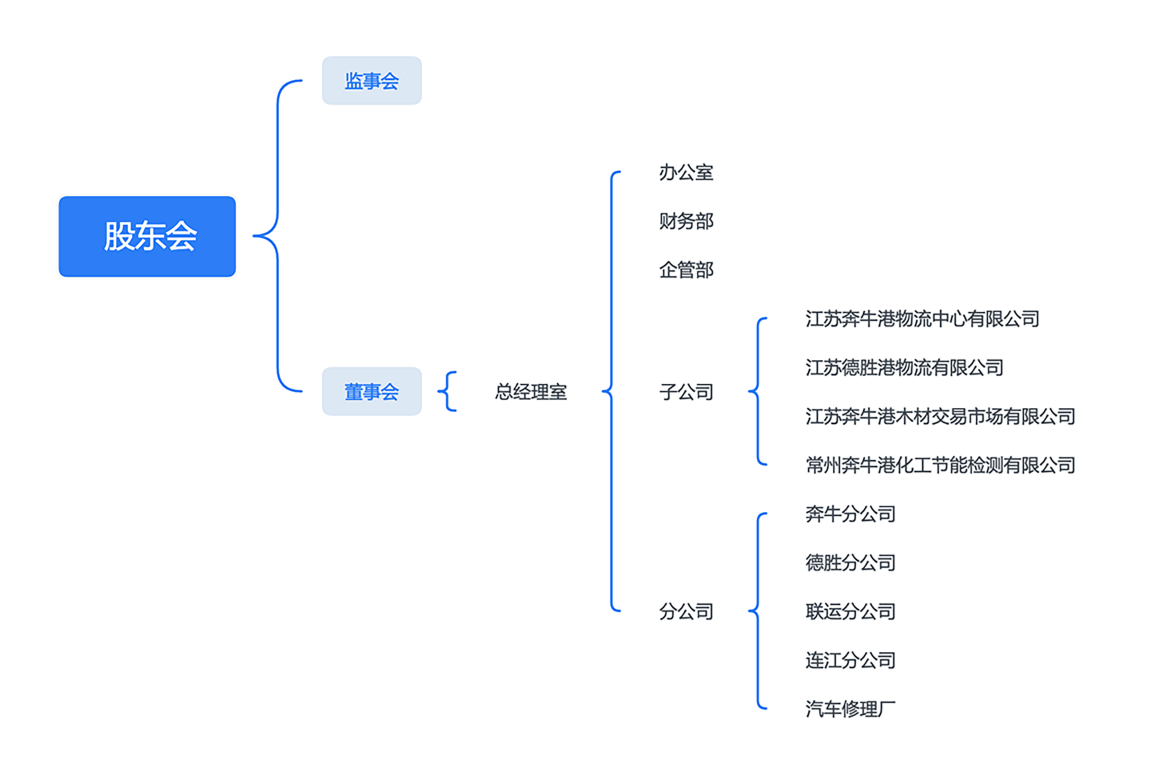 公司下设5个分公司和4个全资子公司,主要提供“装卸运输、仓储配送、流通加工、多式联运分拣包装、信息传输、木材交易、化工检测、融资担保、供应链管理”等基本物流服务和物流增值服务。近年来,奔牛港务集团以铁公水中转为支撑, 依托港口的物流平台,按照“物流+市场”、“物流+金融”的经营模式,开展多式联运和专业市场建设,促进物流业和商贸业互动发展,重点打造省内有重要影响力的“多式联运示范基地”和“公共物流服务平台”, 建设辐射于整个长三角的“生产资料集散中心”和“现代服务业集聚区”。